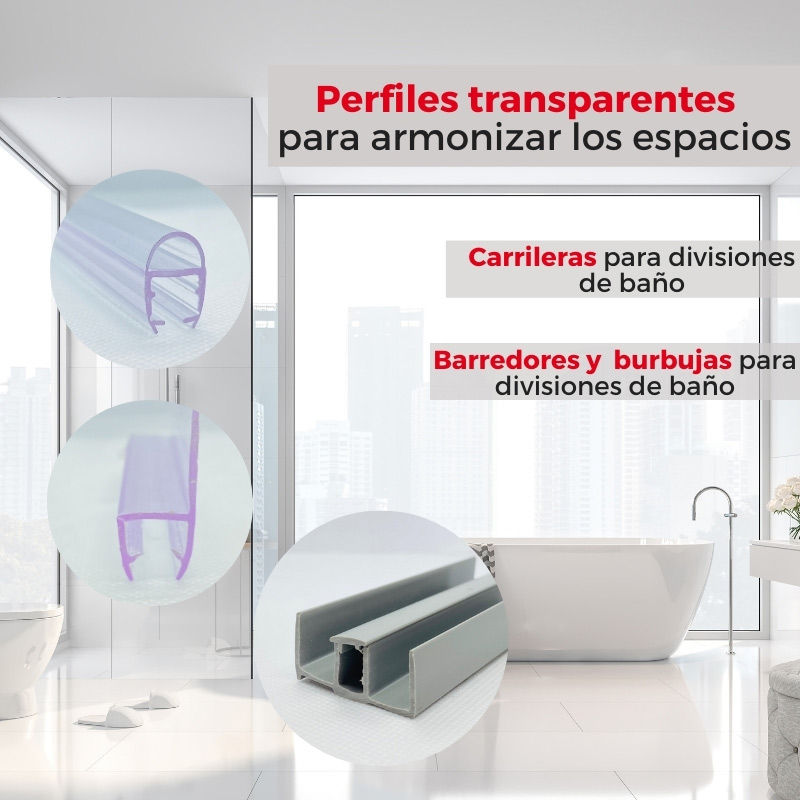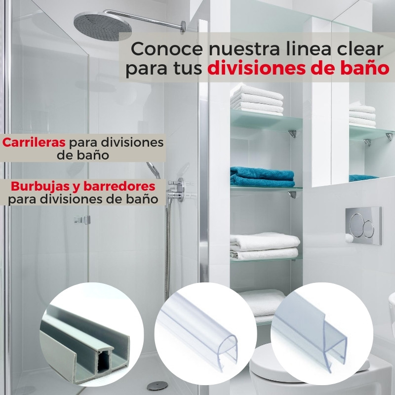 Mejora la apariencia de tus espacios de baño con nuestros perfiles Clear que brindan un toque de estilo y armonia a tu proyecto.